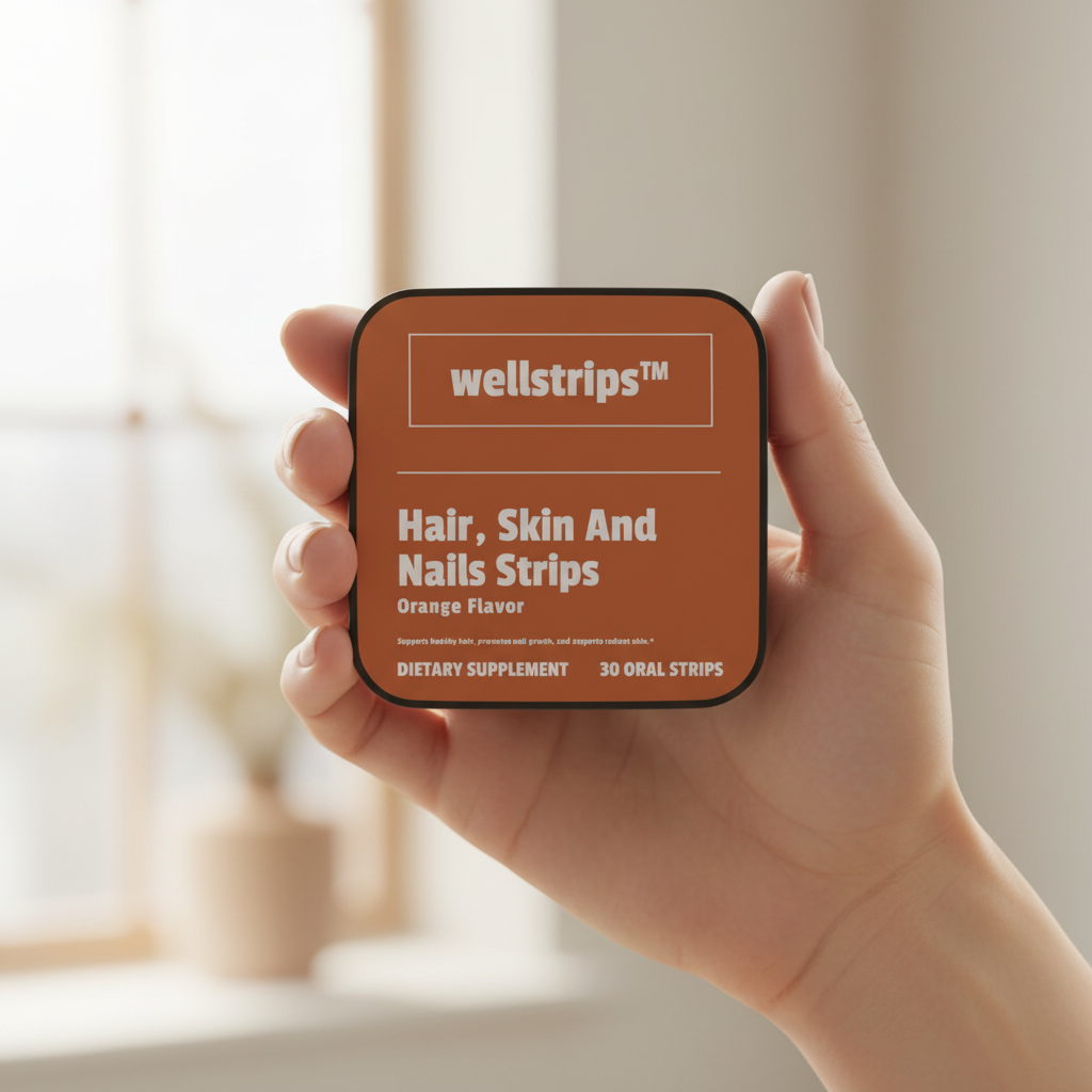 WellStrips™ Hair, Skin and Nails Strips are designed to nourish your natural beauty from within, supporting normal hair strength, healthy skin vitality, and strong nails — all in a quick-dissolving, refreshing strip you can take anytime, anywhere.